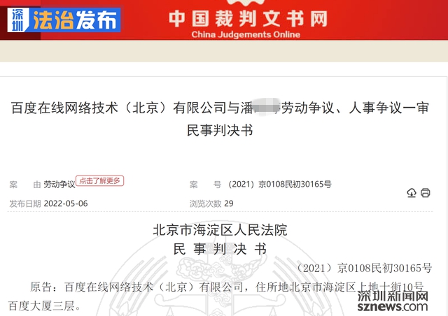 讀特客戶端·深圳新聞網(wǎng)2022年5月12日訊(記者 張玲 翁任瑩 實(shí)習(xí)生 趙薇)5月6日,中國(guó)裁判文書網(wǎng)披露的一起案件顯示,百度公司前員工潘某某離職后入職字節(jié)跳動(dòng),被百度告上法庭,理由是違反競(jìng)業(yè)限制義務(wù)。北京市海淀區(qū)人民法院最終判決潘某返還百度公司為其支付的競(jìng)業(yè)限制補(bǔ)償金214800元,同時(shí)判決潘某某向百度公司支付競(jìng)業(yè)限制違約金859200元,繼續(xù)履行對(duì)百度公司的保密義務(wù)。