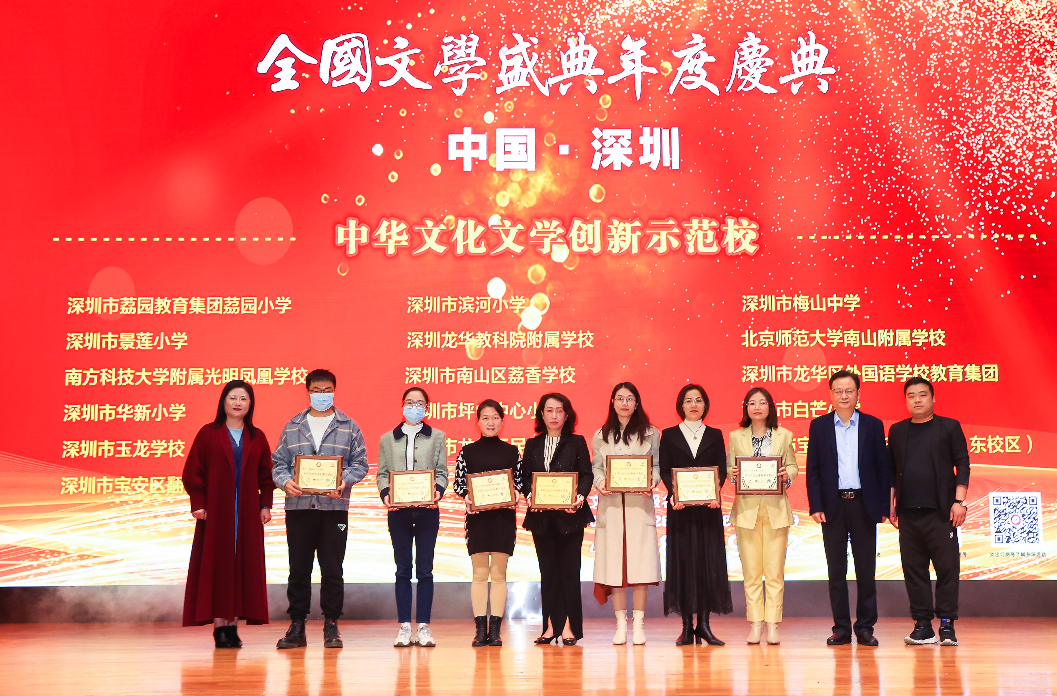 中華文化創(chuàng)新文學示范校獲獎代表合影
