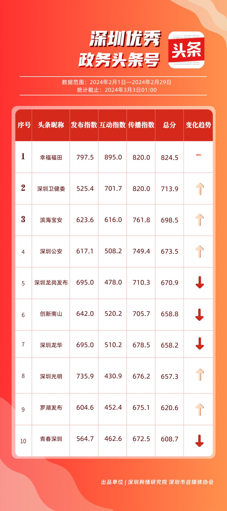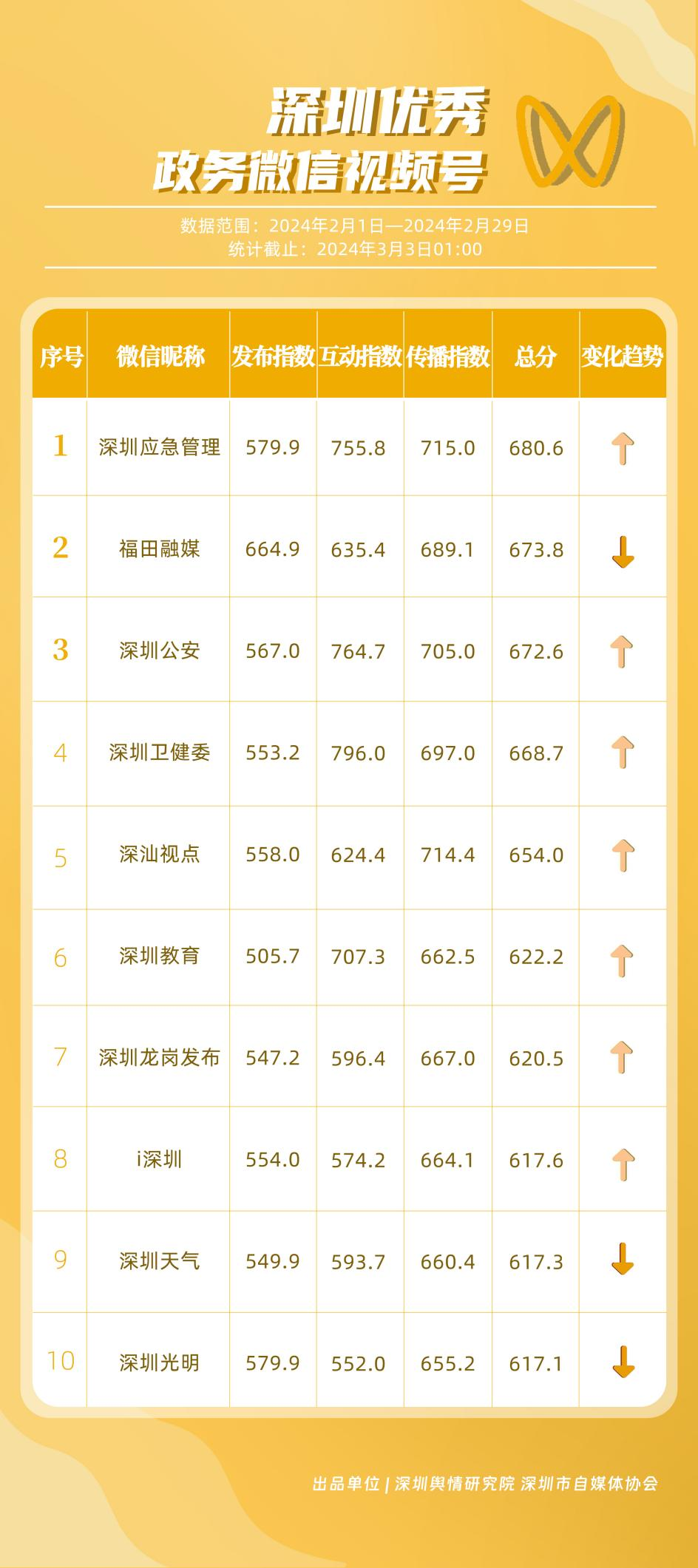 記者關(guān)注到,2月深圳優(yōu)秀政務(wù)新媒體矩陣共10個,展現(xiàn)出多單位在鍛造政務(wù)新媒體優(yōu)質(zhì)矩陣方面取得的良好成效,助力深圳政務(wù)新媒體矩陣健康有序發(fā)展。