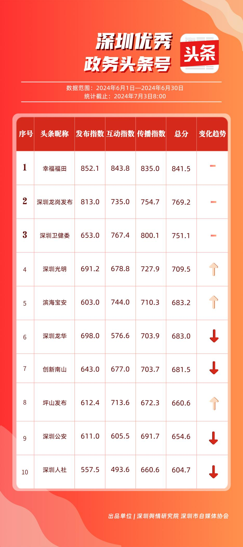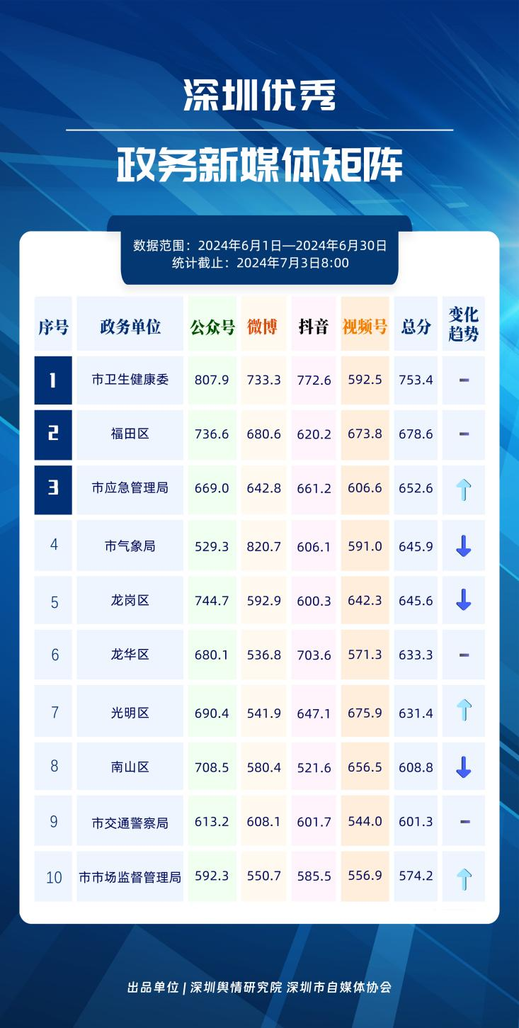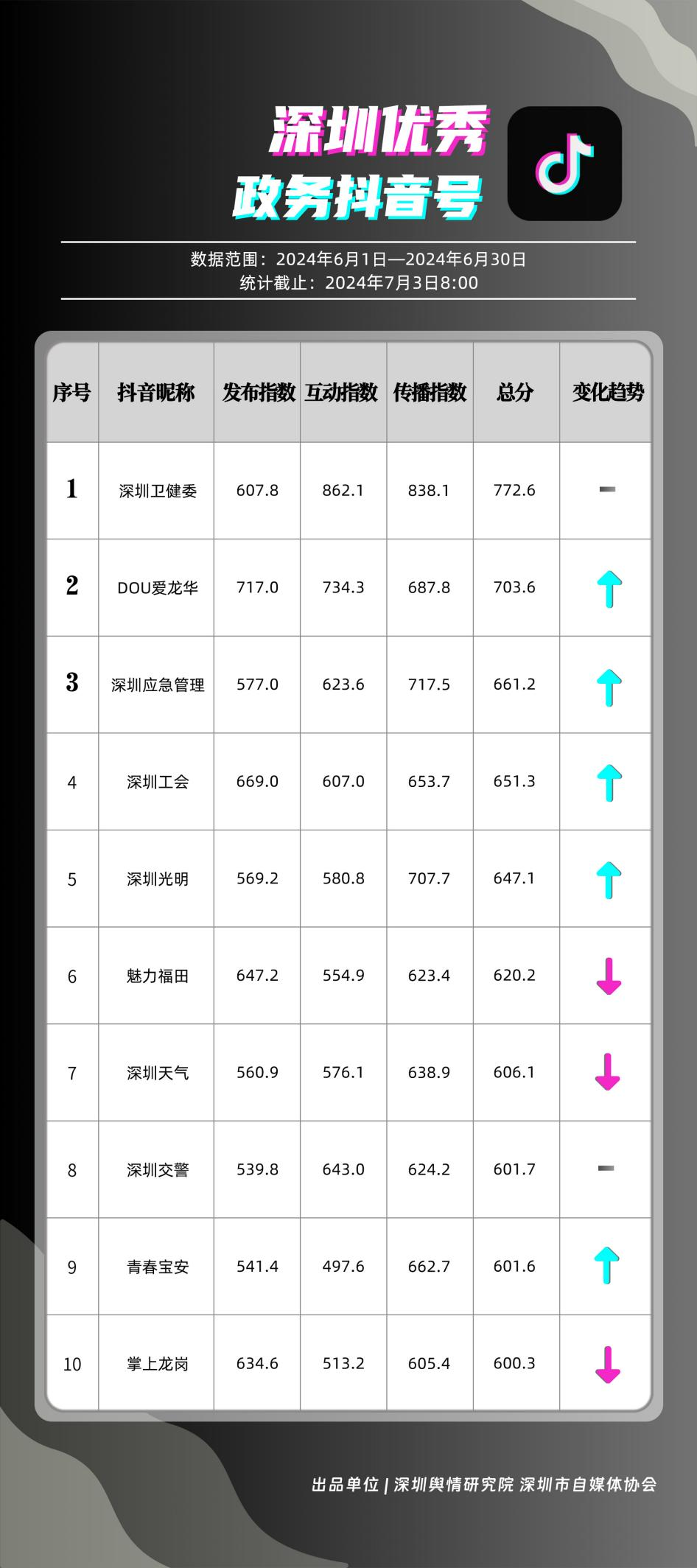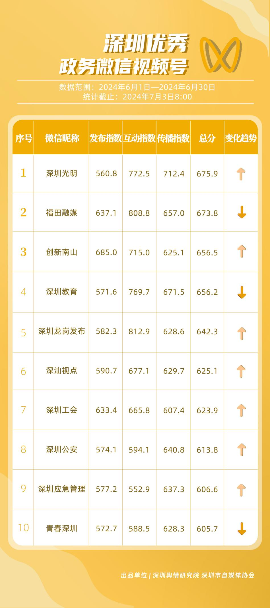 榜單在持續(xù)展示深圳政務新媒體矩陣建設成效的同時,梳理總結了深圳政務微信公眾號、微信視頻號、微博號、抖音號、頭條號的運營方法與經(jīng)驗,是政務公開、回應群眾關切的重要載體。6月,又有哪些政務新媒體取得優(yōu)異成績呢?《深圳優(yōu)秀政務新媒體矩陣》(2024年6月期)邀您共同關注。