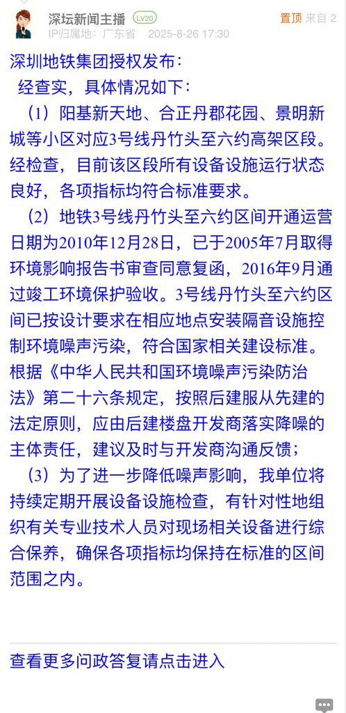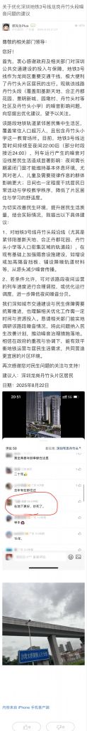 33. 帖文《關(guān)于優(yōu)化深圳地鐵3號線龍崗丹竹頭段噪音問題的建議》