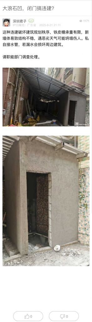 10. 帖文《投訴羅湖區(qū)蓮塘街道聚寶路仙湖楓景長期明顯違建!(六)》
