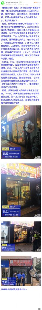 目前,我隊(duì)已安排人員夜間對該店定點(diǎn)巡查,下一步,我隊(duì)將持續(xù)加強(qiáng)該處市容環(huán)境整治力度,對于多次勸導(dǎo)拒不整改的情況,將對其暫扣相關(guān)經(jīng)營工具。感謝您對城市管理工作的理解與支持!