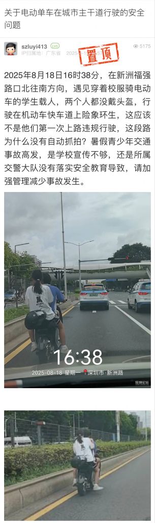 網(wǎng)友您好,關(guān)于您反映的新洲路南往北方向電動車違規(guī)駕駛行為的問題福田大隊(duì)已收悉并轉(zhuǎn)轄區(qū)中隊(duì)核查,對兩名電動車騎乘人開展批評教育。福田交警在節(jié)假日、開學(xué)等時間節(jié)點(diǎn)均開展多次交通安全進(jìn)校園工作,同步加強(qiáng)護(hù)校崗工作,增加護(hù)校、護(hù)學(xué)警力。臨近開學(xué),福田交警將與福田區(qū)教育局共同開展交通安全開學(xué)第一課,做好未成年人交通安全保障工作。感謝您對交通工作的理解與支持!