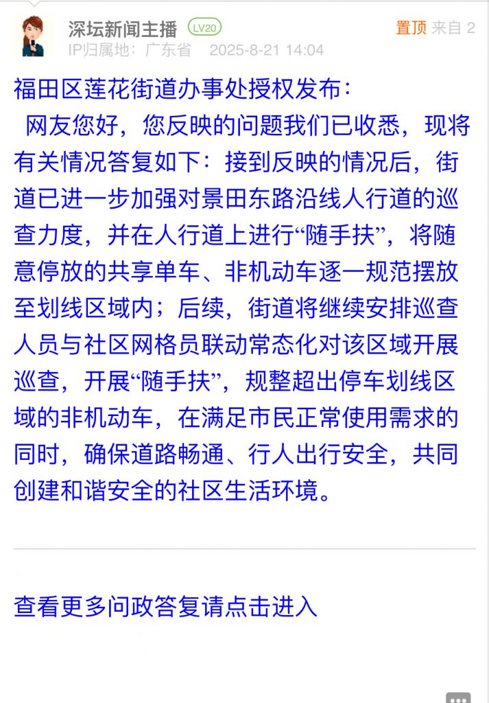 各職能單位如需對網(wǎng)友反映的問題進(jìn)行回應(yīng),可在深圳論壇注冊官方賬號并通過認(rèn)證,回帖進(jìn)行回應(yīng)。