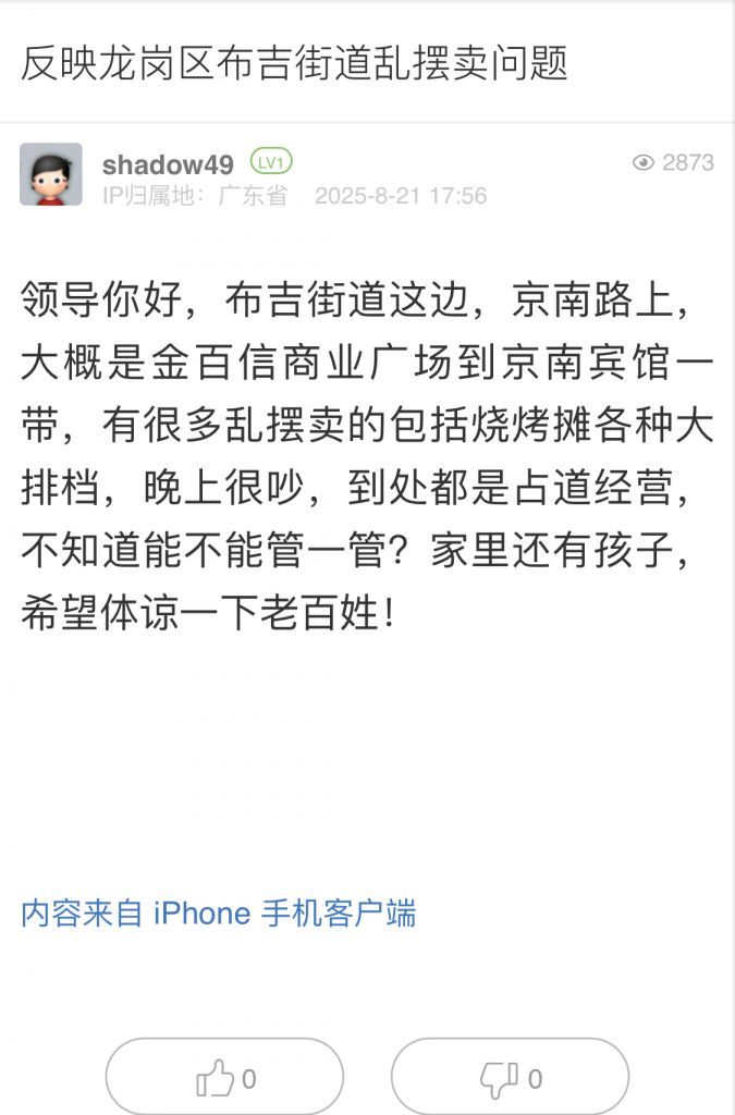 22. 帖文《反映龍崗區(qū)布吉街道亂擺賣問題》