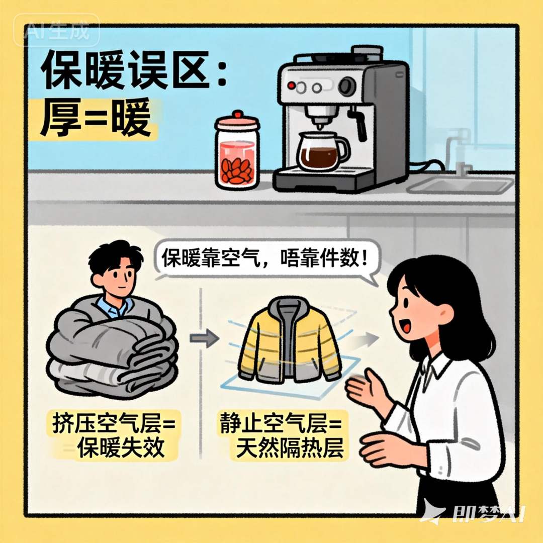 寒潮席卷全國(guó),多地氣溫驟降,保暖成了大家最關(guān)心的話題。不少人覺(jué)得“裹得越厚越暖和”,在羽絨服里層層疊加毛衣、衛(wèi)衣,結(jié)果反而又悶又不暖,甚至汗?jié)裰鴽觥?/p>