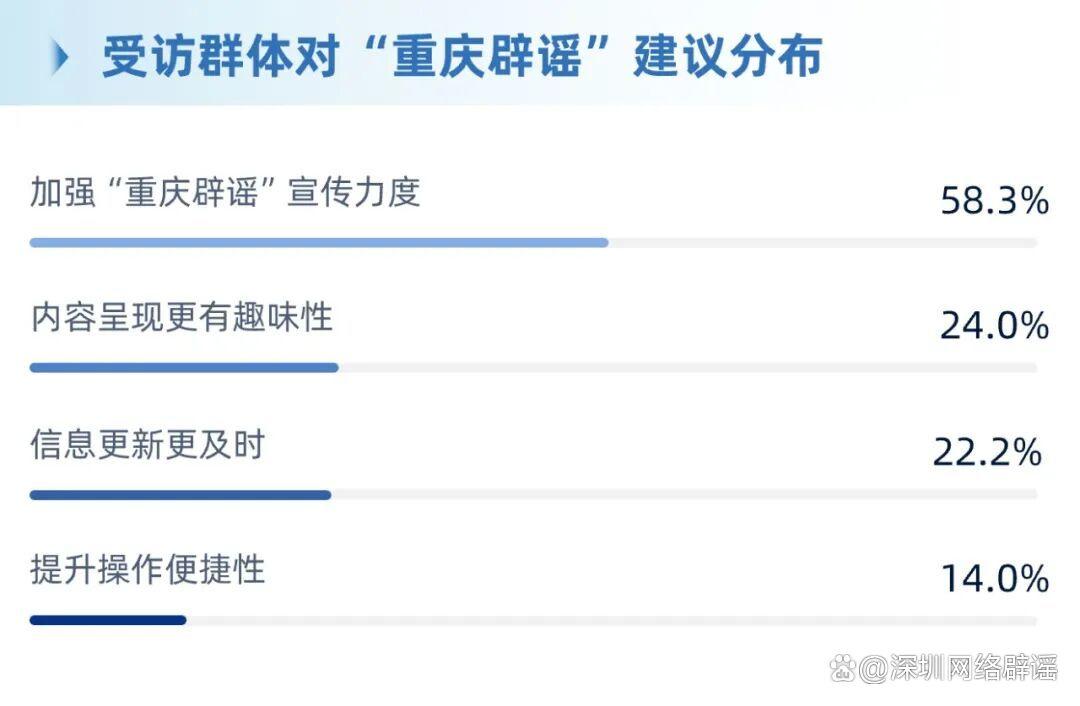 ·公眾對“重慶辟謠”的改進訴求鮮明,加強宣傳力度占比58.3%,與8.4%的知曉率形成直接呼應(yīng)。