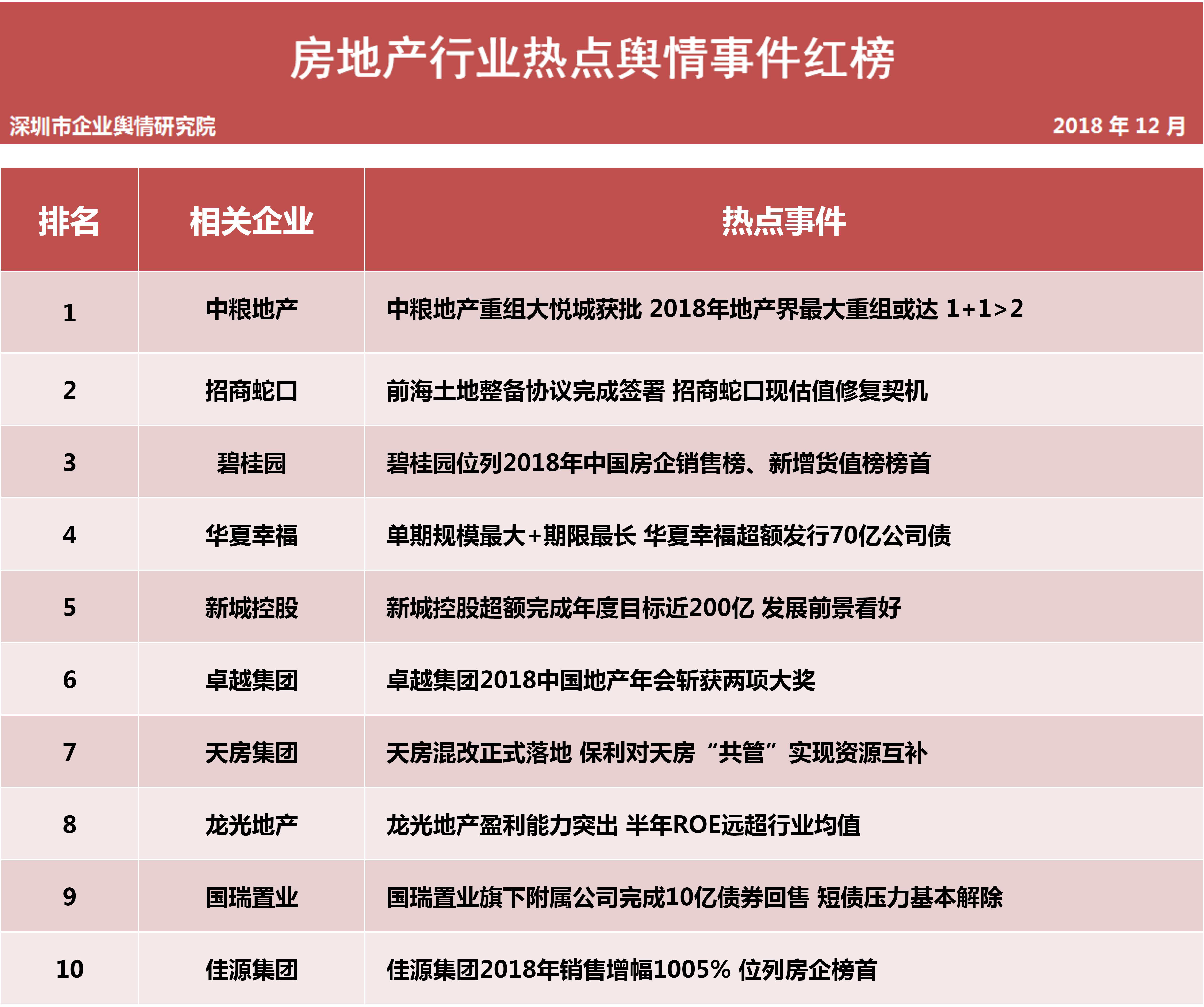 1月31日,深圳企業(yè)輿情研究院發(fā)布第十二批企業(yè)輿情榜單。本次榜單重點聚焦房地產(chǎn)及醫(yī)藥保健兩個行業(yè)。