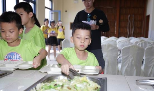 家長與孩子抵達(dá)活動現(xiàn)場,由孩子自行簽到,領(lǐng)取活動用品;家長隨工作人員指引入座,參與開營儀式。