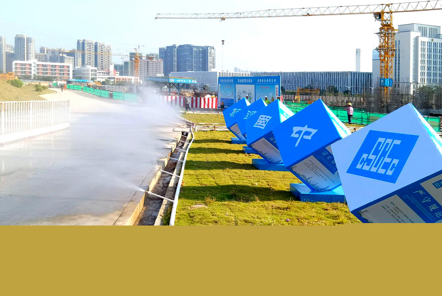 日前,在觀瀾街道地鐵四號線4302標段施工工地上空,四套高聳的塔吊噴霧系統(tǒng)格外引人注目。
